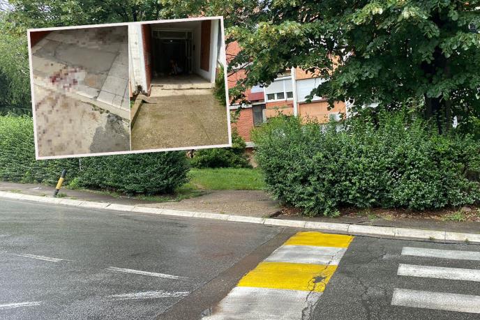 U zgradi u naselju Medaković ceo ulaz u zgradi je pokriven krvavim tragovima, a komšije kažu da su oko pola dva posle ponoći čuli policiju.