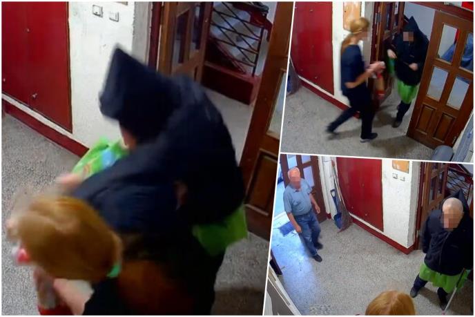 Na snimku se vidi kako stariji muškarac pesnicom udara mladića koji mirno stoji u holu zgrade i ne uzvraća mu, niti se brani, dok drugi muškarac posmatra situaciju.