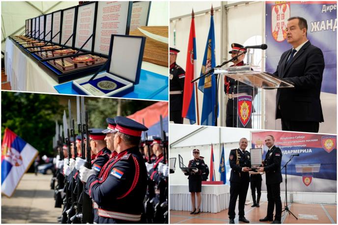 - U različitim periodima, njena uloga i struktura su se menjale, ali njena posvećenost zaštiti države i njenih građana ostala je nepromenjena. Žandarmerija je kroz godine dokazala svoju izuzetnost, hrabrost i profesionalizam u mnogim situacijama. Od borbe protiv terorizma, organizovanog kriminala, preko obezbeđivanja javnog reda i mira, do humanitarnih misija i pomoći u vanrednim situacijama. Njeni pripadnici su uvek bili na prvoj liniji, spremni da odgovore na svaki izazov sa odlučnošću i nepokolebljivom posvećenošću - poručio je ministar Dačić.