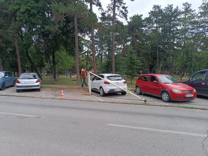 On je na početku ulice Kragujevačkog oktobra kod Velikog parka zakačio kabl i oborio stub ulične rasvete na jedno parkirano vozilo.