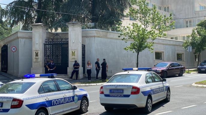 PRVE FOTOGRAFIJE SA MESTA GDE JE ŽANDARM NAPADNUT SAMOSTRELOM: Policija opkolila ambasadu na Dedinju, oglasio se Dačić (FOTO) Foto: Kurir