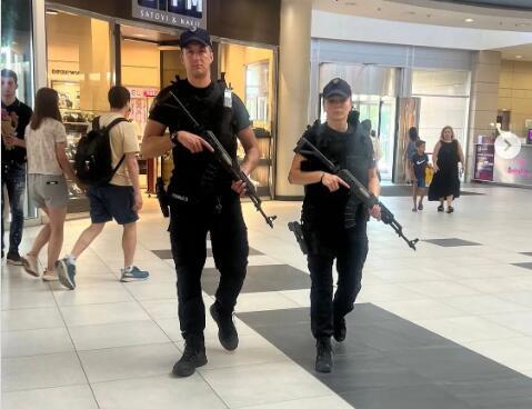 Instagram stranica MUP Srbije podelila je fotografiju na kojoj se mogu videti pripadnici policije kako patroliraju tržnim centrom noseći puške.