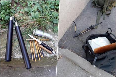 Kod njega u rancu su pronađeni samostrel sa sedam strela, nekoliko noževa i tegla sa topovskim udarom. Istražuju se motivi, lice nije na spisku ekstremista, vrši se pretres stana, njegove izjave su da ga progone mafija i službe i da zato ovo sve nosi sa sobom.