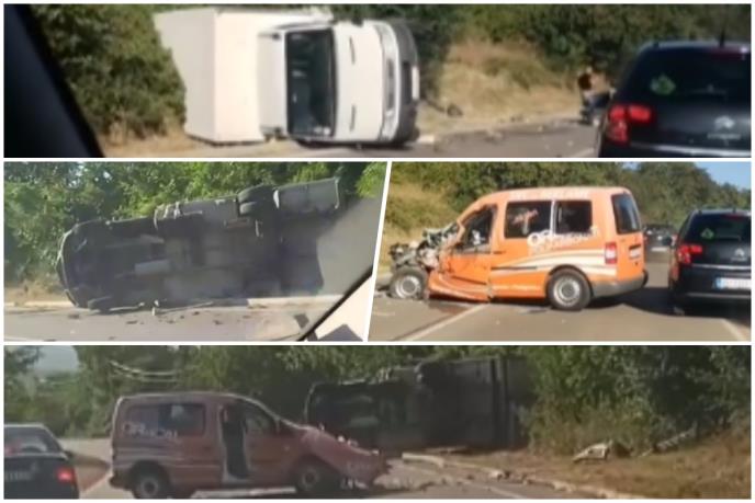Kako se vidi na snimku objavljenom na društvenim mrežama, došlo je do sudara kamiona i kombi vozila, nakon čega je kamion sleteo sa puta i prevrnuo se.