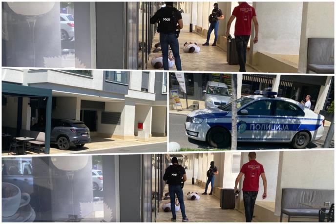 - Naoružani pripadnici Uprave kriminalističke policije su sa trojicom osumnjičenih ispred lokala, koji leže na podu okrenuti licima ka dole i sa rukama iza leđa - kaže naš izvor.