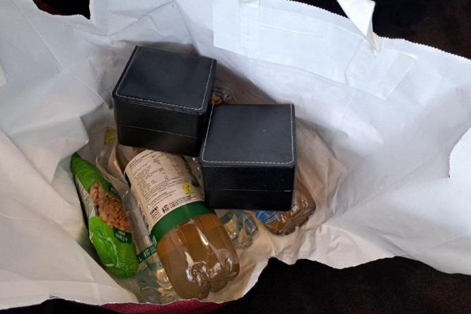 Carinski i policijski službenici su tokom kontrole, iza zadnjeg sedišta, u kesi sa grickalicama i osvežavajućim napicima, pronašli i dva ručna časovnika marke ''Rolex Daytona''.