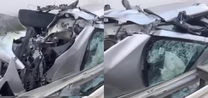 Automobil je ostao u potpunosti smrskan, ali se dodaje da je do nesreće došlo usred pucanja gume.