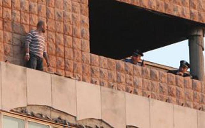 Pretpostavlja se da je mušakarac neopaženo ušao u polurazrušenu zgradu popne se na šesti sprat, razvali vrata i izađe na terasu gde se i sada nalazi, a na terasi osim policije nalazi se i vojska, dok mušakarac i dalje nervozno šeta po terasi. Saobraćaj se zasada obavlja normalno.