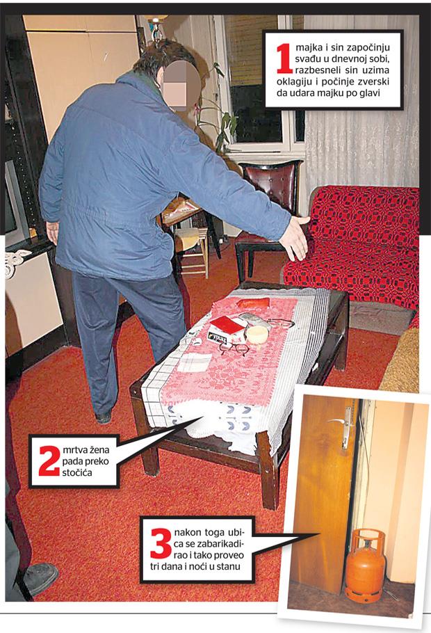 On je posle hapšenja ispričao da je majku ubio, navodno, u samoodbrani, a budući da je reč o teškom psihičkom bolesniku, sproveden je u zatvorsko odeljenje psihijatrijske bolnice Gornja Toponica kod Niša.
