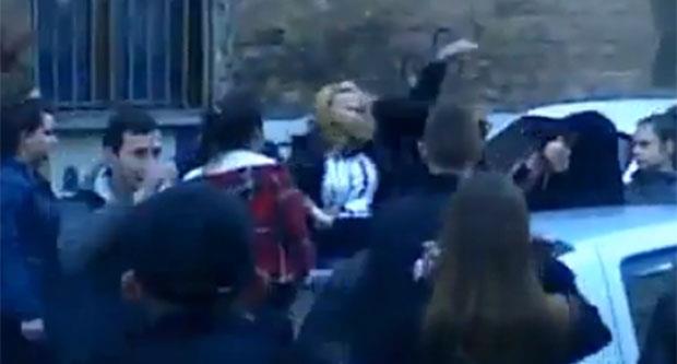 Devojke se nastavljaju tući nasred ulice, dok za to vreme njihovi školski drugovi sve to mirni posmatraju, smeju se i snimaju mobilnim telefonima.