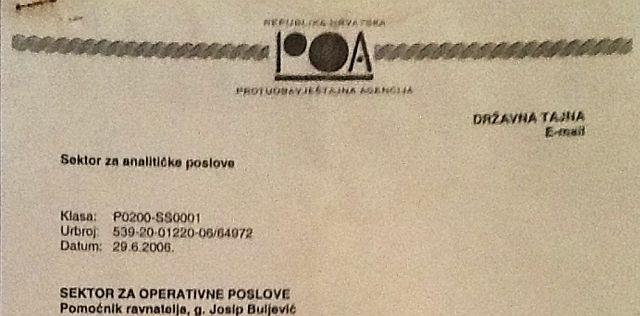 Naime radi se o dokumentu hrvatske Protivobaveštajne agencije ( POA), koji se sastoji od devet strana sa oznakom “ državna tajna”, koji govori kako su nekadašnji šef POA Tomislav Karamarko ( sada predsednik HDZ Hrvatske), Josip Buljević ( sada hrvatski konzul u Los Anđelesu) i Joško Badžim (kontrolor tajnih službi u "Uredu veća za nacionalnu bezbednost") opstruisali rad Haškog tribunala špijunirajući svedoke, istražioce, nevladine aktiviste, diplomate i diskreditovali ih, kao ne bi mogli svedočiti protiv hrvatskih generala.