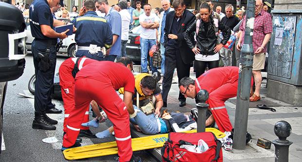 - Automobil se kretao Vlajkovićevom ulicom, a skuter Svetogorskom. Odjednom se začuo jak prasak, a mladić i devojka su pali s motora. Oborena su dva betonska stuba, a delovi skutera bili su razbacani na sve strane - kaže izvor Kurira iz policije i dodaje da će istragom biti utvrđeno da li je eventualno jedan od vozača prošao kroz crveno svetlo na raskrsnici.