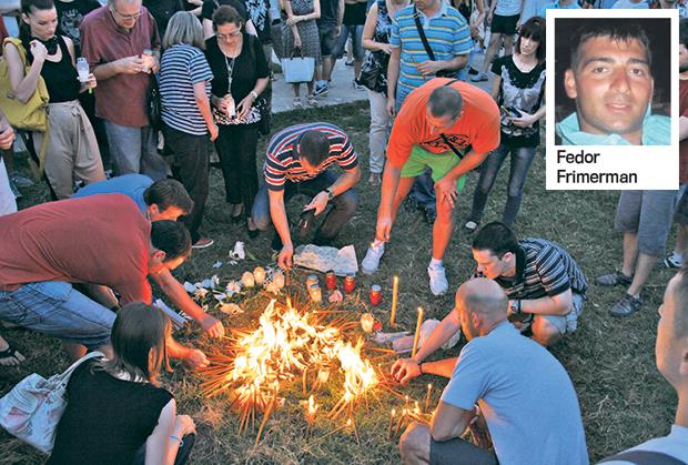 Fedora Frimermana (30), koji je 25. jula brutalno ubijen ispred splava „Saund“ na Novom Beogradu, i dvojicu njegovih prijatelja tuklo je više od 30 ljudi, izjavili su juče, kako Kurir saznaje, pred istražnim sudijom Višeg suda u Beogradu tokom detaljnog svedočenja Nemanja G., prijatelj pokojnog Frimermana, kao i radnik obezbeđenja splava Dušan V.!