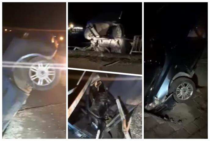 Kako se navodi na društvenim mrežama, drama se odigrala na mostu kod bazena u centru Vladimiraca, kada je automobil probio ogradu mosta i ostao da visi.