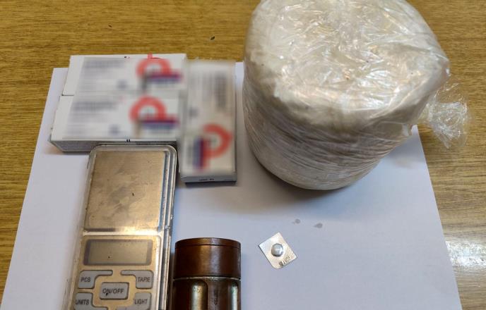 Policija je u njegovoj kući pronašla i zaplenila 958 grama materije za koju se sumnja da je amfetamin i više komada lekova koji se nalaze na listi psihoaktivnih supstanci.