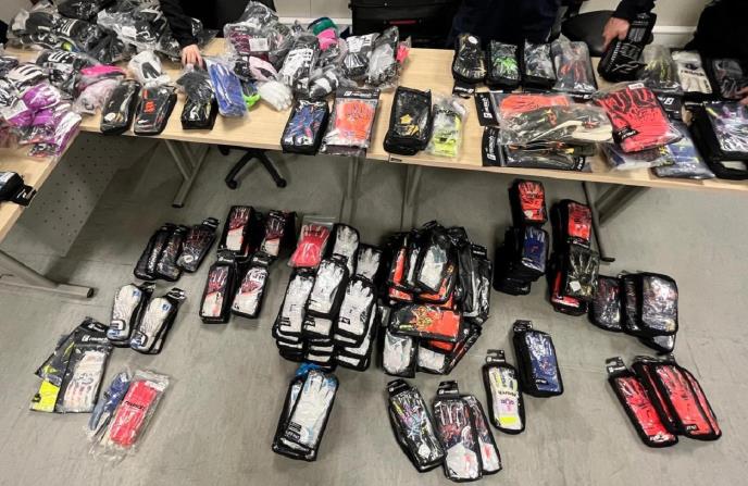 Detaljnom kontrolom je utvrđeno da je prtljažnik automobila pun novih sportskih rukavica i druge opreme: 235 pari firmiranih sportskih rukavica (178 pari golmanskih marke ''Reusch'', 57 pari skijaških marki ''Reusch'' i ''Bogner''), kao i 13 sportskih odevnih predmeta marke ''Reusch''.