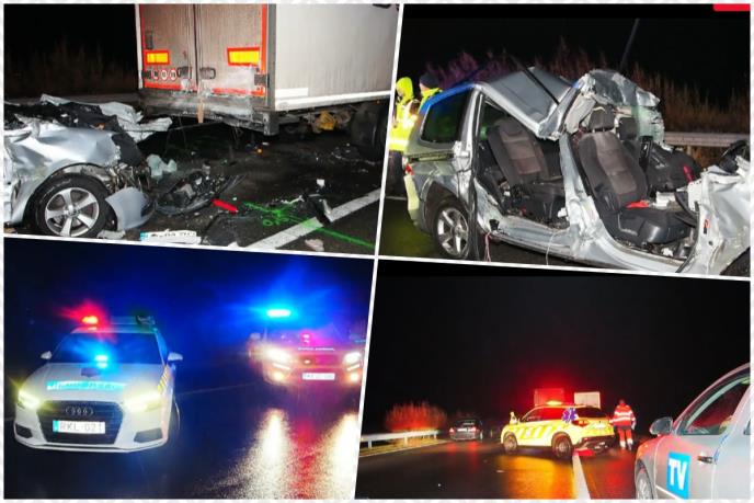 Kako se vidi na stravičnim fotografijama, automobil se u punoj brzini zabio u zadnji deo kamiona.