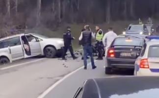 Kako se vidi na snimku, prednji deo jednog vozila potpuno je uništen, a srča je rasuta svuda po putu.