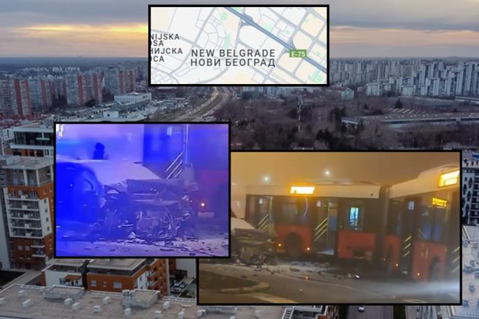 Kako se navodi u objavi na Instagram stranici "Serbia live Beograd", verovatno je automobil velikom brzinom uleteo u kružni tok i udario GSP autobus po sredini.