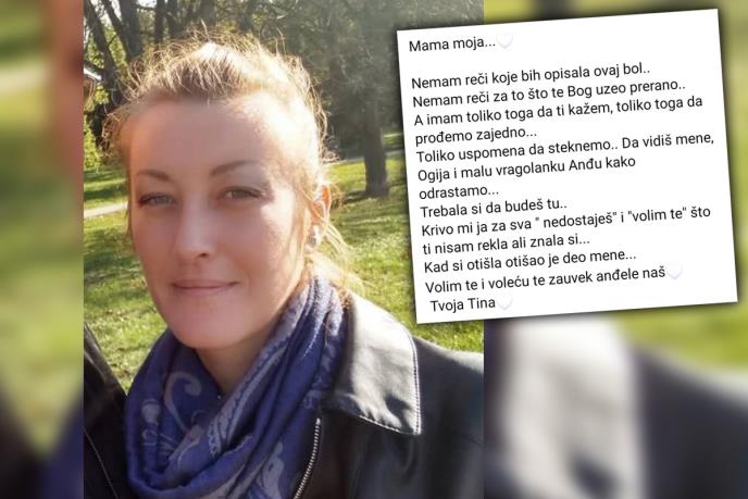 - Mama moja... Nemam reči kojima bi opisala ovaj bol. Nemam reči za to što te Bog uzeo prerano. A imam toliko toga da ti kažem, toliko toga da prođemo zajedno. Toliko uspomena da steknemo. Da vidiš mene, Ogija i malu vragolanku Anđu kako odrastamo. Trebala si da budeš tu. Krivo mi je za sva "nedostaješ" i "volim te" što ti nisam rekla, ali znala si. Kad si otišla, otišao je deo mene. Volim te i voleću te zauvek anđele naš. Tvoja Tina - piše u tužnoj objavi na Fejsbuku.