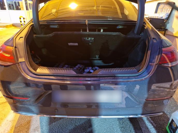Međutim, tokom detaljne kontrole koja je usledila, carinski službenici su u prtljažniku zatekli kofer ispunjen neprijavljenim cigaretama, da bi odmah potom i ispod tapacirunga, u šupljini predviđenoj za rezervni točak zatekli dodatnu količinu spornih cigareta.