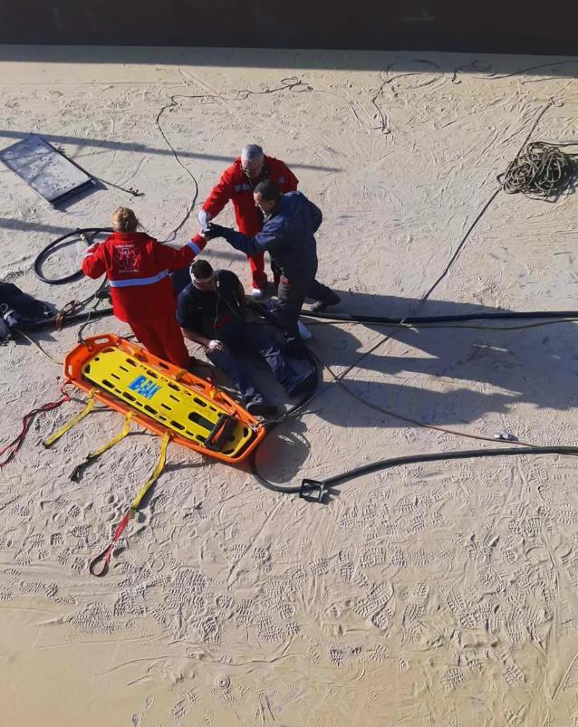 Pripadnici Vatrogasno-spasilačke jedinice u Zrenjaninu spasili su danas povređenog radnika na brodogradilištu kod Perleza, nakon što je upao u unutrašnjost barže.