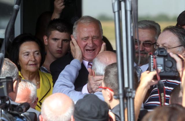Penzionisanog generala ispred ulaza u VIP salon na aerodromu Beograd dočekala je porodica, rođaci, prijatelji a među okupljenima je bio i pevač Andrija Era Ojdanić.