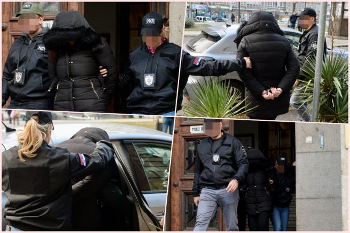 Uhapšena S. K. na sebi je imala jaknu, a lice je sakrila ispod velike kapuljače. Ubrzanim hodom ušla je u vozilo policije. Njoj je određeno zadržavanje do 48 sati, nakon čega će biti saslušana u Višem javnom tužilaštvu u Beogradu.