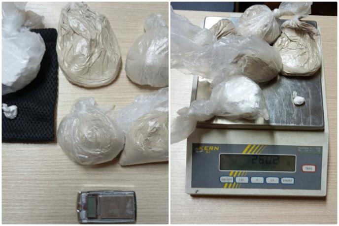 Prilikom pretresa njegove kuće na području Rume, policija je pronašla i zaplenila 200,1 gram praha za koji se sumnja da je heroin, 60,1 gram materije za koju se sumnja da je kokain i digitalnu vagicu.