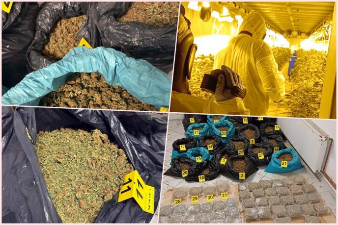 Policija je prilikom pretresa objekta u kome se nalazila ilegalna laboratorija pronašla i zaplenila oko 300 stabljika kanabisa u punoj vegetativnoj zrelosti i oko 500 ovakvih stabljika, visine oko 25 centimetara, ukupne težine 171,9 kilograma. Takođe pronađeno je i oko 131,7 kilograma suve materije za koju se sumnja da je marihuana, koja je bila zapakovana u vakumskim pakovanjima i najlonskim džakovima.