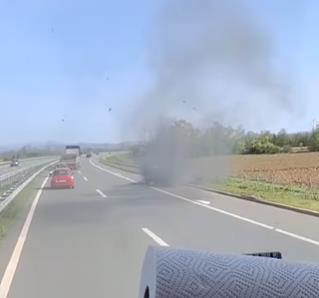 Na auto-putu Miloš Veliki, između petlji Ljig i Lajkovac, u pravcu ka Čačku, došlo je do požara na jednom putničkom vozilu.