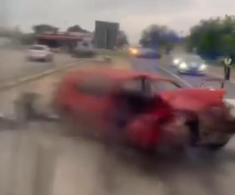 Kako se vidi na snimku koji je objavila Instagram stranica 192_rs crveni automobil marke "golf" je prepolovljen.