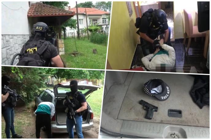 Pripadnici UKP upali su u kuću osumnjičenog, odakle su ga izveli sa lisicama na rukama. Kako se vidi na snimku, pripadnici UKP su "ovnom" morali da razvale vrata stana gde su pronašli osumnjičenog.