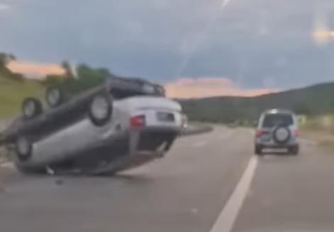 Naime, saobraćajka se dogodila tako što se prikolica na kojoj je bilo drugo vozilo otkačila nasred puta, nakon čega se prevrnula.