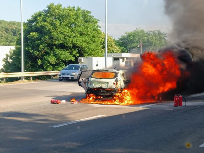 Jedan automobil je izgoreo danas kod naplatne rampe u Malom Požarevcu.