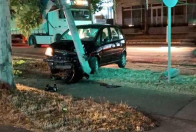TEŠKA NESREĆA U ZRENJANINU: Automobil sleteo s puta pa se zakucao u banderu (FOTO)