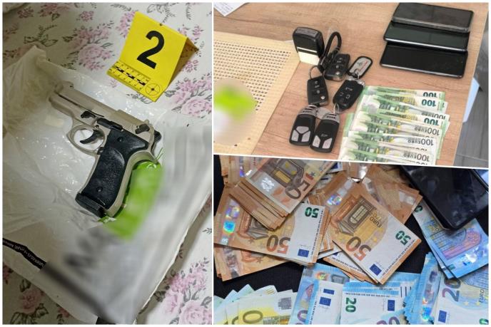Prilikom pretresanja stana i drugih prostorija osumnjičenih pronađena su i privremeno oduzeta tri automobila, više mobilnih telefona, oružje, više od 40.000 evra i 650.000 dinara.