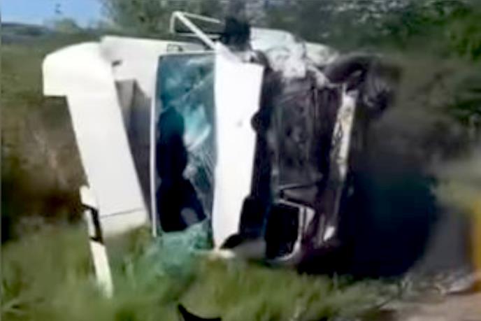 Na terenu se stvaraju velike gužve, a kako se vidi na snimku, usled saobraćajne nesreće vozilo je sletelo sa puta i u potpunosti je uništeno.