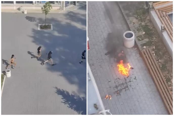 Na snimku se vidi grupa mlađih muškaraca s maskama na licu kako trče ulicom, a prema navodima Instagram stranice „Bačka Palanka dešavanja“, oni su nosili palice i bacili Molotovljev koktel. Na snimku se vidi kako gori predmet koji se nalazi na trotoaru i kako kulja crni dim, a potom i grupa lica kako trče.