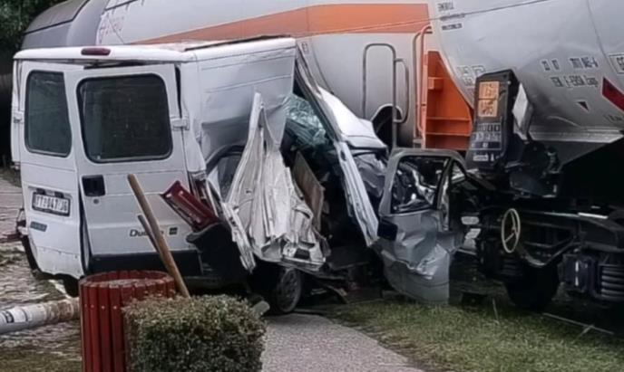ŠTA JE OVAJ ČOVEK PREŽIVEO?! KOMBI ZGUŽVAN SKROZ Sudar na pruzi u Smederevu: Iako scena deluje zastrašujuće, u nesreći nema teže povređenih?! (FOTO)