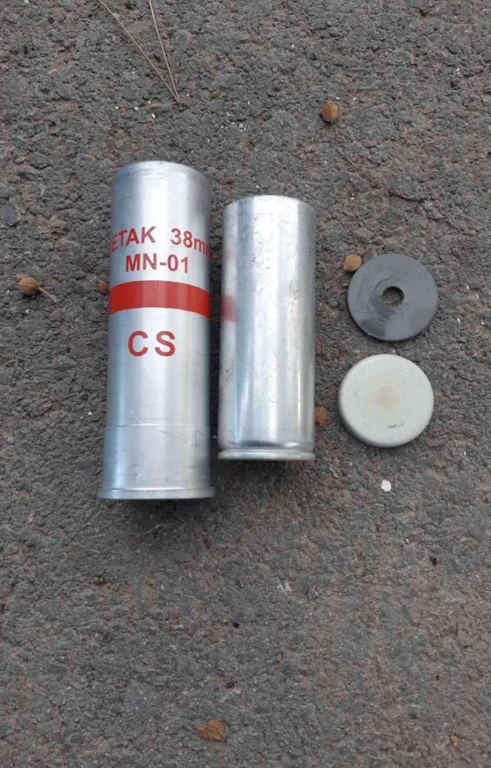 Takođe, na prikazanoj fotografiji nalazi se čaura od ispaljenog metka pored koje stoji jednodelni segment u kome se nalazila hemijska materija "CS", a koje je bila lansirana. Čaura i jednodelni segment osnovni su delovi hemijskog metka.