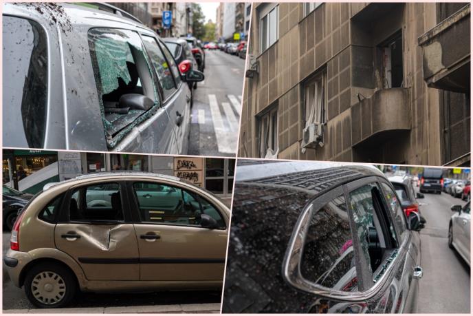 Na trećem spratu zgrade sinoć je, prema rečima stanara "puklo kao bomba". Srča, delovi cigli, maltera, kao i nameštaja i stvari nakon eksplozije završili su u hodniku zgrade, ali i u Kosovskoj ulici.