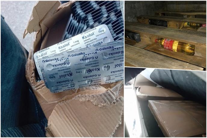 Tokom detaljnog pregleda kabine, carinici su ispod dušeka gornjeg ležaja pronašli sakriven tovar — 75.475 tableta koje se nalaze na spisku droga, kao i 26 litara domaće rakije.
