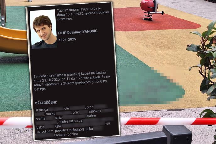 - Tužnim srcem javljamo da je dana 16.10.2025. godine tragično preminuo Filip Ivanović. Saučešće primamo u gradskoj kapeli na Cetinje dana 21.10.2025. od 11 do 15 časova, kada će se obaviti sahrana na Starom gradskom groblju na Cetinje - piše u čitulji koju potpisuje porodica Ivanović koja je pre samo 20 dana ostala i bez starijeg sina Andrije Ivanovića (36). Andrija Ivanović, podsetimo, likvidiran je 29. septembra zajedno sa Milom Beladom u automobilu na putu Cetinje-Budva.