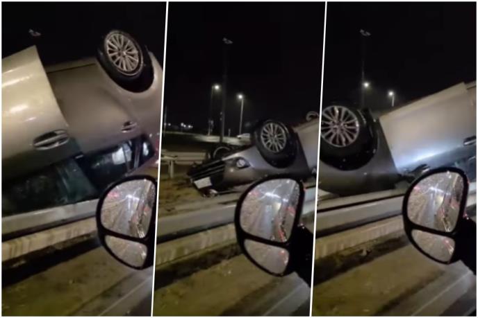Teška saobraćajka dogodila se večeras na obilaznici u Novom Sadu kod Aptiva na kružnom toku kada se prevrnuo automobil.