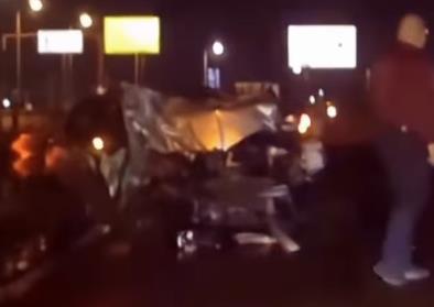 Na snimku sa mesta nesreće vidi se da potpuno smrskan automobil.