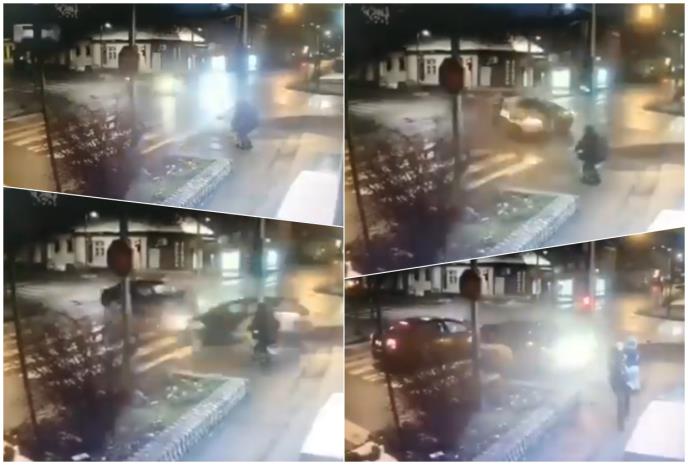 Naime, snimak je nastao  2021. godine kada je žena sa malim detetom htela da pređe raskrsnicu na pešačkom prelazu, ali je za to čekala signalizaciju, odnosno semafor. U jednom trenutku, iz suprotnih smerova dolazila su vozila, a jedan automobil usled neprilagođene brzine dolazio je sa leve strane i prošao je na crveno svetlo na semaforu i, kako se vidi na snimku, direktno se zakucao u drugi automobil koji je ušao u raskrsnicu.