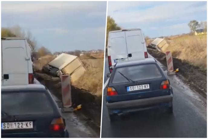 Na putu Kula - Crvenka došlo je do saobraćajne nesreće kada je kamion sleteo sa puta u kanal.