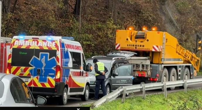 U Ovčarsko-kablarskoj klisuri u toku je izvlačenje džipa marke "audi" iz betonskog propusta koji se nalazi tik do magistrale!