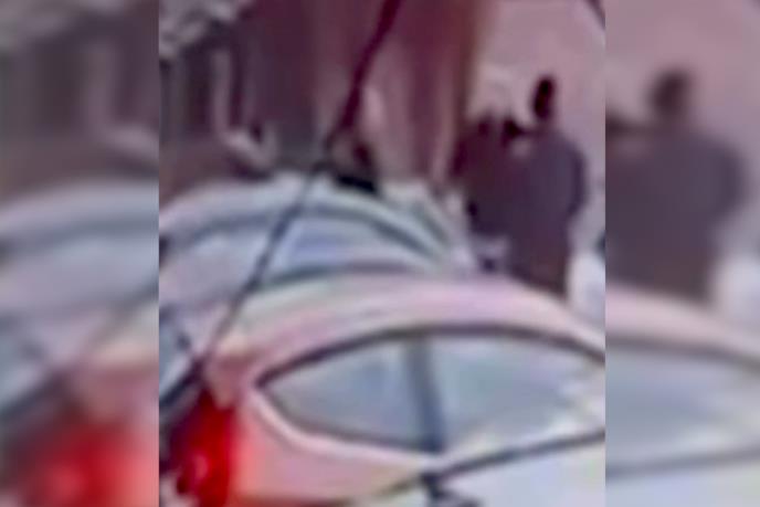 Ubrzo zatim, muškarci uskaču u belu "fiat pandu" i udaljavaju se sa mesta pucnjave.